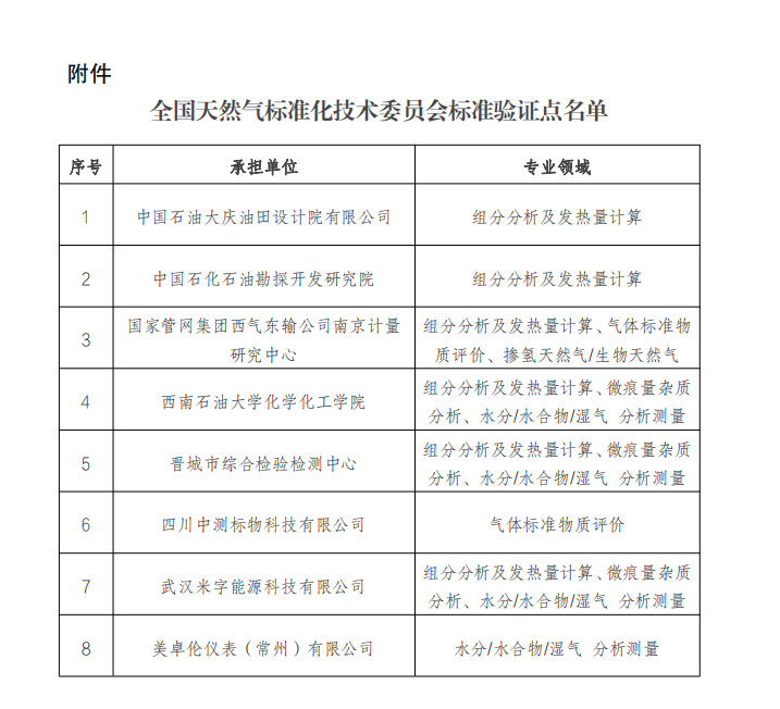 2024年12月2日,全國天然氣標準化技術委員會發(fā)布《關于批準設立全國天然氣標準化技術委員會標準驗證點(第一批)的通知》(國氣標秘〔2024〕70號),米字科技獲批設立三項專業(yè)領域的標準驗證點,分別是組分分析及發(fā)熱量計算、微痕量雜質(zhì)分析、水分/水合物/濕氣分析測量。